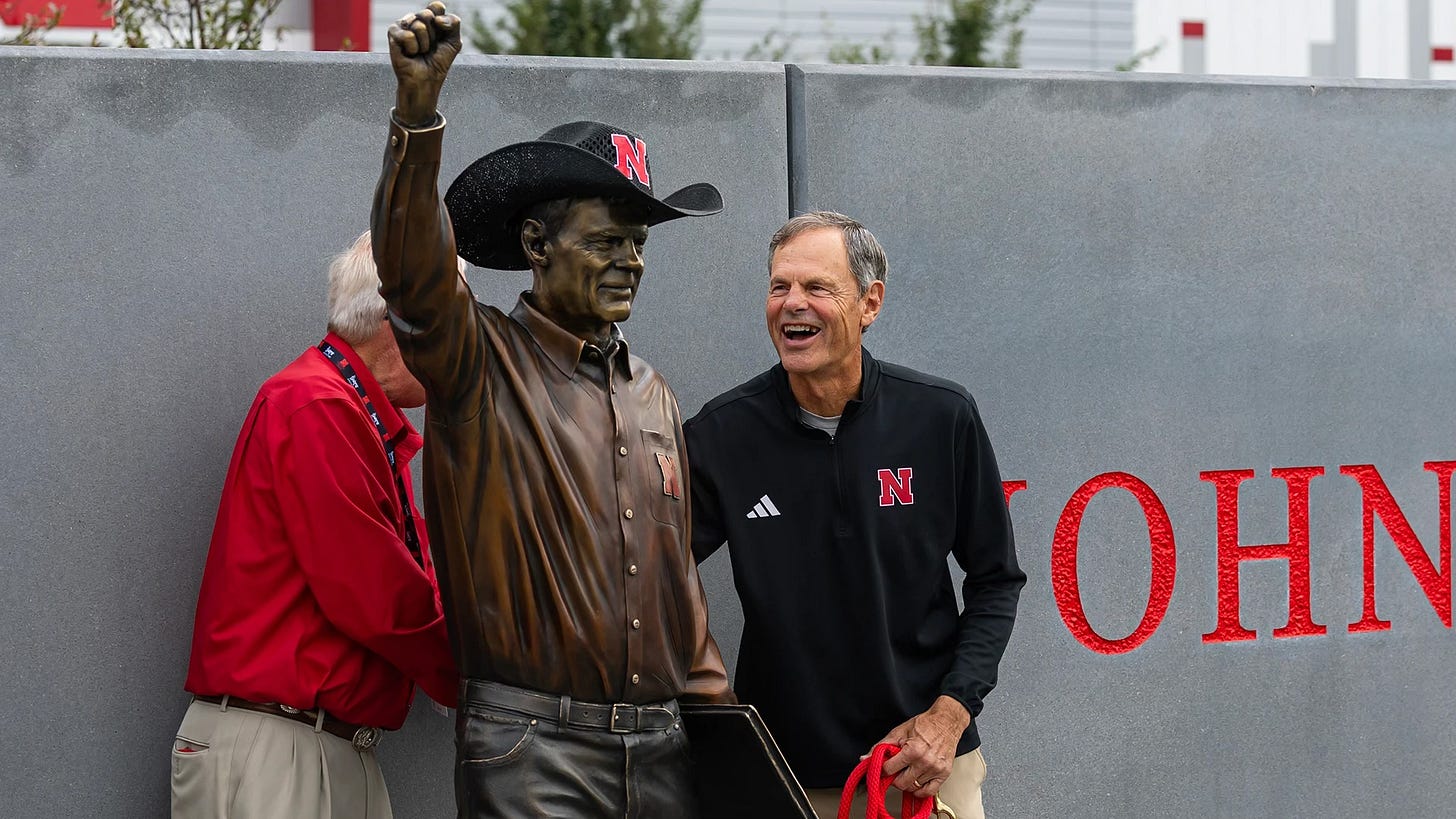 Anyway, the University of Nebraska honored one of the most iconic figures in Husker Athletics on Thursday with a statue dedication ceremony for legendary volleyball coach John Cook. The bronze tribute stands on the north side of the Bob Devaney Sports Center, near the bottom of the pedestrian ramp.