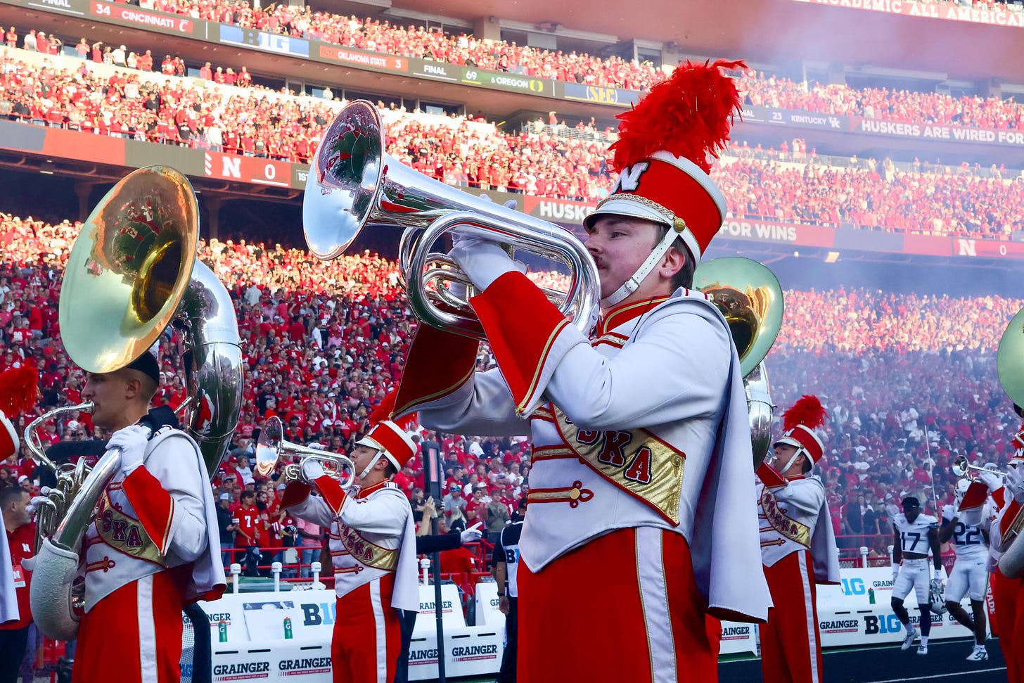 A quick note for fans in the building: because of expected heat, Nebraska Athletics is allowing one sealed bottle of water per person. Empty personal bottles are always permitted for refills inside the stadium.
