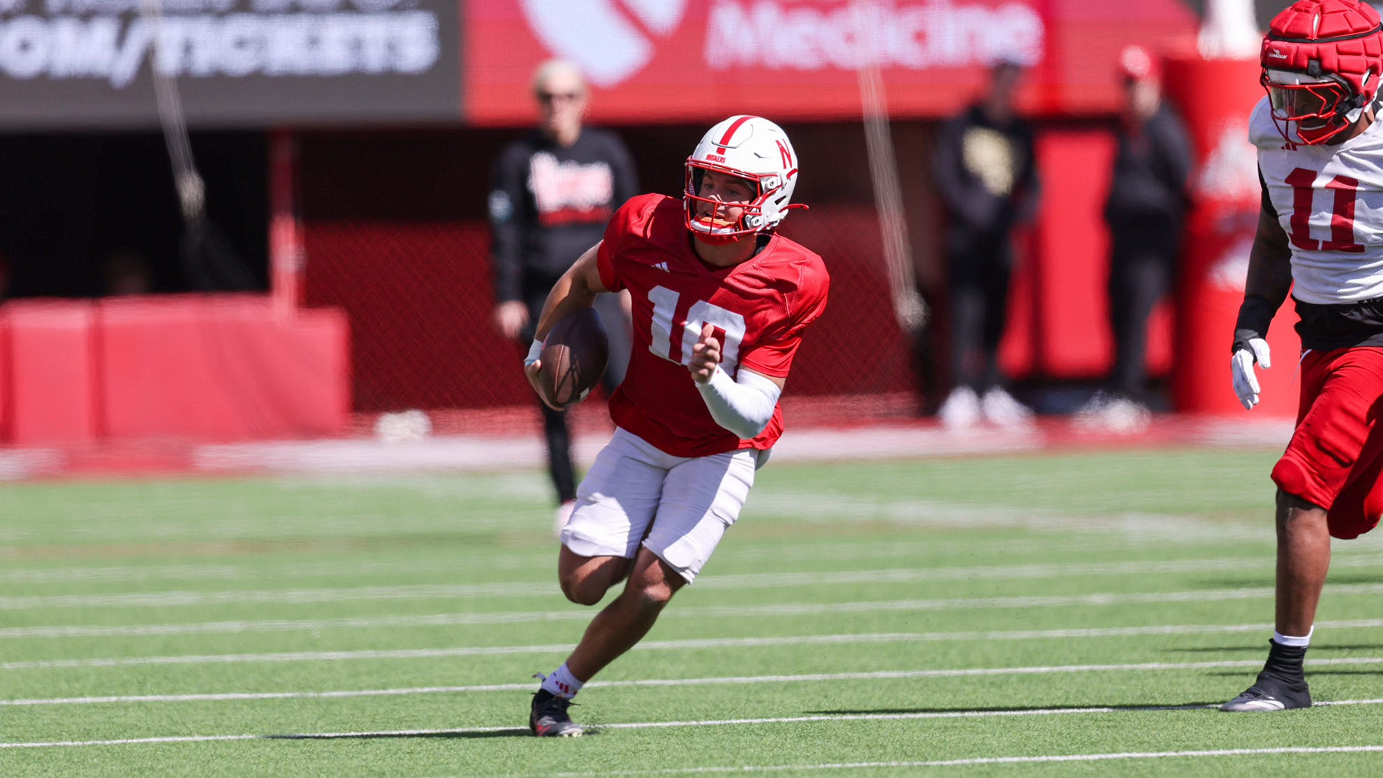 Colandrea’s running ability was mostly kept under wraps, but you saw a flash in a 12-yard run that might’ve been much longer if the quarterbacks actually had to be tackled. That part of his game will be vital to his total impact in Lincoln.